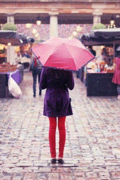 Photo credit: A friend of mine took this photo of me while I was figuring out what get for lunch, it started to rain and I opened my umbrella and she captured the moment. We surrendered to having pizza.